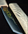 Ручка ножа, лезвие и футляр выполнены из древесины твердых пород, на них нанесен яркий рисунок, который закреплен слоем лака.